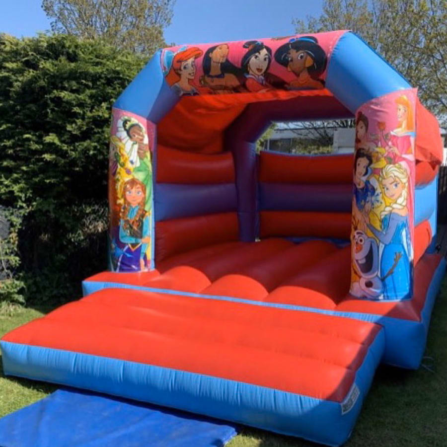 Red and blue princess bouncy castle for hire
