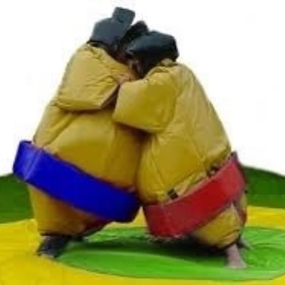 Get your cameras ready because these brilliant battles are social media gold, as two huge wobbly warriors go head to head in the ancient art of sumo wrestling. A unique experience Strap on the padded sumo suit and you’ll enter the ancient world of Japanese sumo wrestling, seeing exactly what it’s like to be that big as you wrestle and wobble your way around the ring. All you have to do is shove your opponent out of the circle or onto their back and you’re the winner. An amazing look These padded, full body sumo suits really look the part, covering you from head to toe, with just the traditional mawashi belt to cover your modesty. You’ll even get an authentic top-knot hairdo that doubles as a safety helmet. Please take care to put on the suits properly and always wear the helmet to keep you safe. A hilarious game The hardest part about sumo suit wrestling is not defeating your opponent, but managing to stop laughing for long enough to even try. It’s hysterical fun for both the wrestlers and the watching crowd, making it ideal for 18th and 21st birthday parties, stag and hen dos, company fun days, team building and much more. Different sumo sizes Once they’ve seen the sumo suits in action, everyone will want to join the fun, so check out our sumo suits for teenagers and smaller sumo suits for kids so the whole family can take part. We’ve got lots more all-action games available too, including a rodeo bull, the famous gladiator duel and the challenging swinging arm game. To find the best action game hire in Benfleet for you, talk to our team and ask about package deals on multiple hire for fairs or fetes. Book now You can book your adult sumo suit hire right now, with no deposit, by clicking the buttons below. Don’t forget to add overnight hire for just £30 extra (but please don’t use the suits if you have been drinking!)